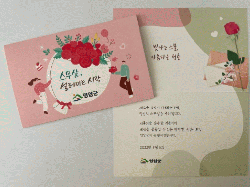 ÃàÇÏ Ä«µå¿¡´Â ¡®ºû³ª´Â ½º¹°, ¾Æ¸§´Ù¿î ûÃᡯÀ̶ó´Â ¹®±¸¿Í »õ·Î¿î ÀÏ»óÀÌ ±â´ëµÇ´Â 5¿ù, ½º¹«»ìÀÌ µÈ °ÍÀ» ÃàÇÏÇÏ¸ç ¼ÅøÁö¸¸ ´ç´çÇÑ ¼ºÀÎÀÌ µÇ±æ ¹Ù¶õ´Ù´Â ÀÀ¿øÀÇ ¸Þ½ÃÁö¸¦ ´ã¾Ò´Ù.
