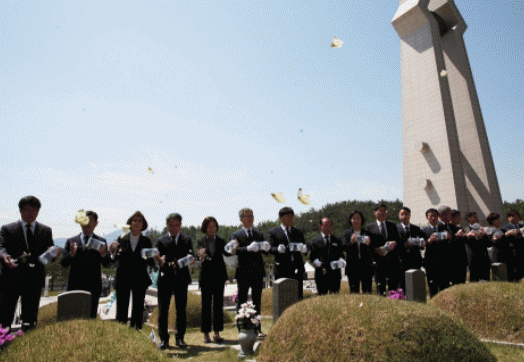 Âü¼®ÀÚµéÀº 5¿ù ¿µ·ÉµéÀÇ ¸íº¹À» ºô¸ç ÇÔÆò±ºÀÌ Á÷Á¢ Ű¿î 518¸¶¸® Èò³ªºñ¸¦ ±¹¸³5¡¤18¹ÎÁÖ¹¦Áö »ó°øÀ¸·Î ³¯·Á º¸³Â´Ù.