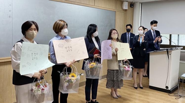 Çлýȸ ÀÓ¿øµé°ú ÀçÇлýµéÀº 5¿ù 13ÀÏ ·Ñ¸µÆäÀÌÆÛ¿Í Ä«³×À̼ÇÀ» ±³¼öÁø¿¡°Ô Àü´ÞÇßÀ¸¸ç, ºñ´ë¸é ¼ö¾÷ ÁßÀÎ 3Çгâ ÀçÇлýµéÀº ¿µ»óÆíÁö·Î °¨»çÀÇ ¸¶À½À» ÀüÇß´Ù.