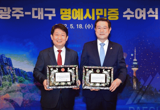 ¾Õ¼ ´ë±¸½Ã´Â Áö³ 4¿ù Á¶·Ê¿¡¼ Á¤ÇÑ ÀýÂ÷¿¡ µû¶ó À̿뼷 ±¤ÁÖ½ÃÀå¿¡ ´ëÇÑ ¸í¿¹½Ã¹ÎÁõ ¼ö¿© µ¿ÀǾÈÀ» ÀÇȸ¿¡¼ Åë°ú½ÃÄ×À¸¸ç, À̳¯ À̿뼷 ½ÃÀåÀº ±Ç¿µÁø ½ÃÀåÀ¸·ÎºÎÅÍ Á¦71¹øÂ° ´ë±¸½Ã ¸í¿¹½Ã¹ÎÁõ°ú ÆÐ¸¦ Àü´Þ ¹Þ¾Ò´Ù.