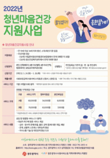 û³â¸¶À½°Ç°Áö¿ø»ç¾÷Àº ½É¸®Àû ¾î·Á¿òÀ» °Þ°í Àִ û³âÃþÀ» ´ë»óÀ¸·Î ÀÏ»óÀû Á¤½Å°Ç° ¹®Á¦¸¦ Áö¿øÇϱâ À§ÇØ ÃßÁøµÇ°í ÀÖ´Ù.