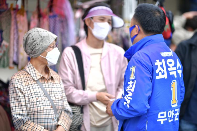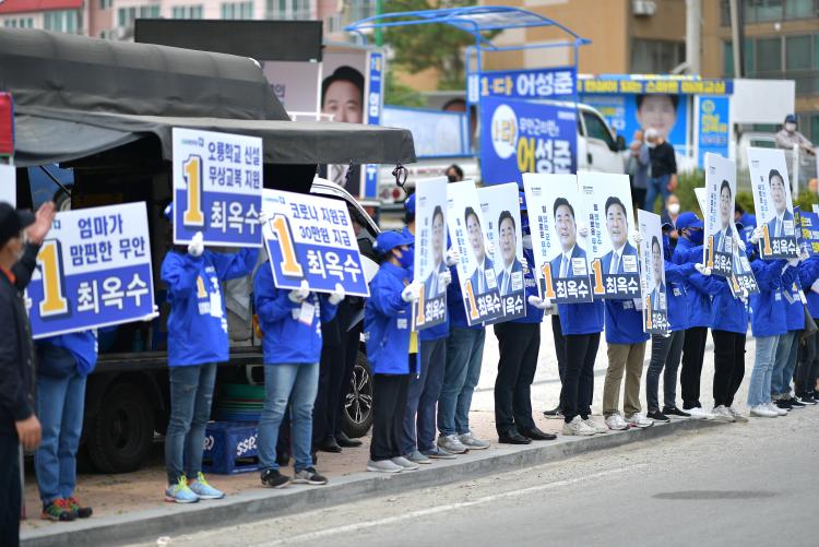 [ÅåÅå´º½º] ¿À´Â 6¡¤1Áö¹æ¼±°Å ¹«¾È±º¼ö ¼±°Å¿¡ ³ª¼± ÃÖ¿Á¼ö ´õºÒ¾î¹ÎÁÖ´ç È帰¡ ȯ°æ¹ÌÈ¿ø°ú Çö´ë»ïÈ£Áß°ø¾÷ Á÷¿øµé¿¡°Ô Ãâ±ÙÀλ縦 ÇÏ´Â °ÍÀ¸·Î °ø½Ä¼±°Å¿îµ¿À» ½ÃÀÛÇß´Ù.