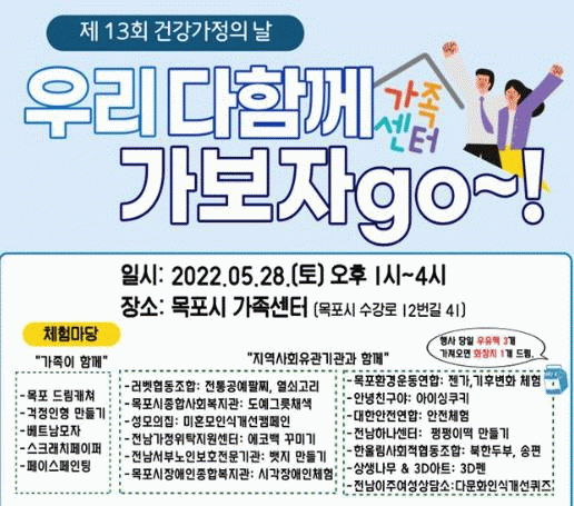 À̹ø ÃàÁ¦´Â ¸ñÆ÷½Ã°Ç°°¡Á¤Áö¿ø¼¾ÅÍ¿¡¼ ¸Å³â °³ÃÖÇßÀ¸³ª ¿ÃÇØ´Â ¸ñÆ÷½Ã°Ç°°¡Á¤Áö¿ø¼¾ÅÍ¿Í ¸ñÆ÷½Ã´Ù¹®È°¡Á·Áö¿ø¼¾Å͸¦ ÅëÇÕÇØ Áö³ 1¿ù »õ·Ó°Ô °³¼ÒÇÑ ¸ñÆ÷½Ã°¡Á·¼¾ÅÍ(¸ñÆ÷ ¼ö°·Î 12¹ø±æ 41)°¡ °³ÃÖÇÑ´Ù.