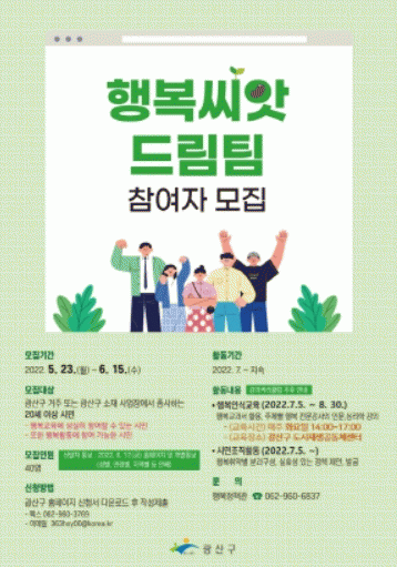 ±¤»ê±¸ °ÅÁÖ ¶Ç´Â ±¤»ê±¸ ¼ÒÀç »ç¾÷Àå¿¡ Á¾»çÇÏ´Â 20¼¼ ÀÌ»ó ½Ã¹Î 40¸í ³»¿Ü·Î ±¸¼ºÇÒ °èȹÀÌ´Ù.