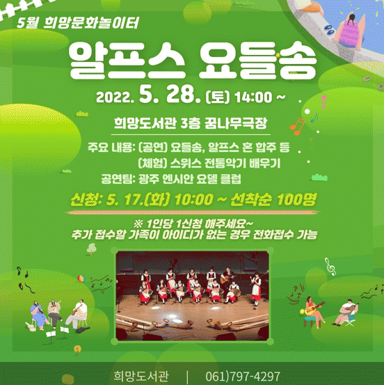 µµ¼°ü 3Ãþ ²Þ³ª¹«±ØÀå¿¡¼ ¿¸®´Â À̹ø À½¾Çȸ¿¡´Â ±¤ÁÖ¿£½Ã¾È¿äµ¨Å¬·´ÀÌ °ø¿¬ÆÀÀ¸·Î Âü¿©ÇØ ¿äµé¼Û°ú ½ºÀ§½º ÀüÅë ¾Ç±â °ø¿¬À» ¼±º¸ÀÏ ¿¹Á¤ÀÌ´Ù.