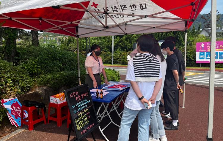 Áø°æ¹Ì »ç¶û³ª´®¼¾ÅÍÀåÀº ¡°°Ç°ÇÒ ¶§ ÇåÇ÷ÇÏ´Â °ÍÀº ÀڽŰú °¡Á·, »çȸ ±¸¼º¿ø ¸ðµÎ¸¦ À§ÇÑ »ç¶ûÀÇ ½ÇõÀÌ´Ù¡±¸ç ¡°¼Ò¾Æ¾Ï¼¾ÅÍ¿¡ ÇåÇ÷Áõ¼¸¦ ±âºÎÇÔÀ¸·Î½á ÀÛ°Ô³ª¸¶ ¾ÆÀ̵鿡°Ô ÀÇ¹Ì ÀÖ´Â ³ª´®ÀÌ µÇ¾úÀ¸¸é ÁÁ°Ú°í, °Ç°ÇÑ Áö¿ª»çȸ ³» ±âºÎ¹®È°¡ Á¤ÂøµÇ¾úÀ¸¸é ÇÏ´Â ¹Ù¶÷ÀÌ´Ù¡±°í µ¡ºÙ¿© ¸»Çß´Ù.