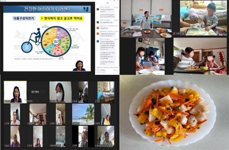 À̹ø ±³À°Àº ±¤»ê±¸¾î¸°À̱޽İü¸®Áö¿ø¼¾ÅÍ ¾çÀºÁÖ ¼¾ÅÍÀåÀÌ ¿µ¡¤À¯¾Æ±â ¹ß´Þ´Ü°è¿¡ µû¸¥ ¿µ¾ç °ü¸® ÁÖÁ¦·Î ÀÌ·Ð °ÀǸ¦ Çß°í, È£³²´ëÇб³ ½Äǰ¿µ¾çÇаú ³ª¿¹½½ ±³¼ö°¡ ºÎ¸ð¿Í ¾ÆÀ̰¡ ÇÔ²² ÇÏ´Â ¡®¾Æ»è¾Æ»è Âü¿Ü±èÄ¡ ¸¸µé±â¡¯ ½Ç½À ±³À°À» ÁøÇàÇß´Ù. ½Ç½À ±³À°¿¡ ÇÊ¿äÇÑ ½ÄÀç·á´Â »çÀü¿¡ Àü´ÞÇÏ¿© ½Ç½Ã°£À¸·Î °¡Á·ÀÌ ¿ä¸®È°µ¿¿¡ Á÷Á¢ Âü¿©ÇÒ ¼ö ÀÖµµ·Ï Çß´Ù.