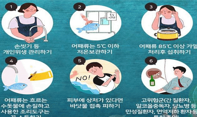 ºñºê¸®¿À ÆÐÇ÷ÁõÀ» ¿¹¹æÇϱâ À§Çؼ´Â ¡â¾îÆÐ·ù ÃæºÐÈ÷ ÀÍÇô ¸Ô±â ¡âÇǺο¡ »óó°¡ ÀÖ´Â »ç¶÷Àº ¹Ù´å¹°¿¡ Á¢ÃËÇÏÁö ¾Ê±â ¡â¾îÆÐ·ù °ü¸®¡¤Á¶¸®ÇÒ ¶§ ¾îÆÐ·ù´Â 5µµ ÀÌÇÏ·Î Àú¿Â º¸°üÇϰí 85µµ ÀÌ»ó °¡¿Ã³¸®ÇÒ °Í ¡â¾îÆÐ·ù¸¦ Á¶¸® ½Ã ÇØ¼ö¸¦ »ç¿ëÇÏÁö ¾Ê°í È帣´Â ¼öµ¾¹°¿¡ ±ú²ýÀÌ ¾Ä±â ¡â¾îÆÐ·ù¸¦ ¿ä¸®ÇÑ µµ¸¶, Ä® µîÀº ¹Ýµå½Ã ¼Òµ¶ ÈÄ »ç¿ë µî ¼öÄ¢À» ÁؼöÇØ¾ß ÇÑ´Ù.