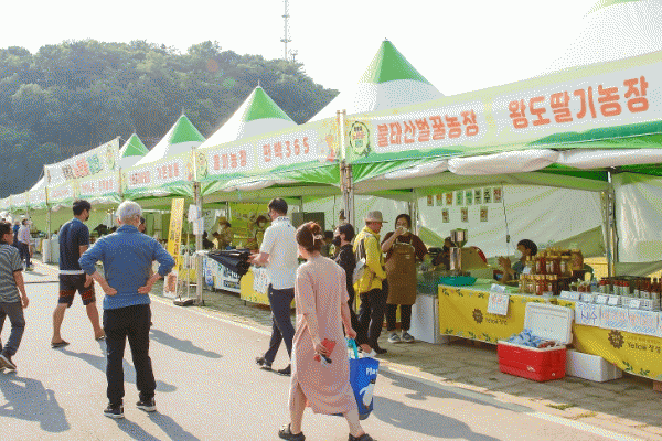 ¿ÃÇØ ³ë¶õ²ÉÀåÅÍ¿¡¼´Â Áö¿ª ³» 16°³ ¾÷ü°¡ 80¿© °³ ǰ¸ñÀ» ¼±º¸¿´´Ù. »ç°ú, Å丶Åä, °í±¸¸¶ µî ³ó»ê¹°ºÎÅÍ ½ÄÃÊ, ²Ü¹ú, À徯Âî, ¹ßÈ¿¾× µî °¡°ø½Äǰ¿¡ À̸£±â±îÁö ´Ù¾çÇÑ Á¦Ç°ÀÌ ÁغñµÅ ½Ã¼±À» ²ø¾ú´Ù. Ãà·É»ê Æí¹é³ª¹« Á¦Ç°µµ ¸¶·ÃµÅ ¼±ÅÃÀÇ ÆøÀ» ³ÐÇû´Ù.