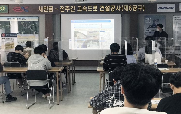 ÇлýµéÀº ÇöÀå °ü°èÀÚµé·ÎºÎÅÍ °ø»ç¿¡ Àû¿ëµÈ ½Å°ø¹ý¿¡ ´ëÇÑ ¼³¸íÀ» µéÀº ÈÄ ¾ÈÀüüÇèÀåÀ¸·Î À̵¿ÇØ °¡»óÇö½Ç·Î °Ç¼³»ç°í¸¦ üÇèÇßÀ¸¸ç, ½ÇÁ¦ ÇöÀå¿¡ ¹æ¹®ÇØ °Ç¼³°ø¹ý ¹× ½Ã°ø¼ø¼ µî¿¡ ´ëÇØ ¾Ë¾Æº¸´Â ½Ã°£À» °¡Á³´Ù.