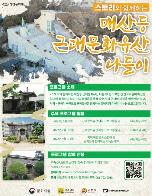 »ý»ý ¹®ÈÀç Ȱ¿ë»ç¾÷Àº ¡®¼±±³»ç¿Í ÇÔ²²ÇÏ´Â ±Ù´ë¹®ÈÀ¯»ê ³ªµéÀÌ¡¯¶ó´Â ÁÖÁ¦·Î ÀÏÁ¦°Á¡±â ¾ÏÈæ±â¿¡ Èñ¸ÁÀÇ ºÒºûÀ» ºñÃß°íÀÚ ¼øÃµÀ» ã¾Æ¿Ô´ø ¼±±³»çµéÀÇ ¿Â±â°¡ °í½º¶õÈ÷ ³²¾ÆÀÖ´Â ¸Å»êµî ÀÏ¿ø¿¡¼ ÁøÇàµÈ´Ù. ÇØ¼³»ç¿Í ÇÔ²² ¸Å»êµî ÀÏ¿ø ¹®ÈÀ¯»ê°ú ±âµ¶±³¿ª»ç¹Ú¹°°üÀ» ´ä»çÇϰí, °ú°Å ¼±±³»ç°¡ µÇ¾î ±× ½Ã´ë¸¦ °æÇèÇØº¼ ±âȸµµ °¡Áú ¼ö ÀÖ´Ù. ¶ÇÇÑ °ú°Å ¿©Çà ¼Ó¿¡¼ ÀÜÀÜÇÑ À½¾Ç°ú ÇÔ²² Èú¸µÇÒ ¼ö ÀÖ´Â ÇÁ·¹½ºÅÏ À½¾Çȸµµ °³ÃÖµÉ ¿¹Á¤ÀÌ´Ù.
