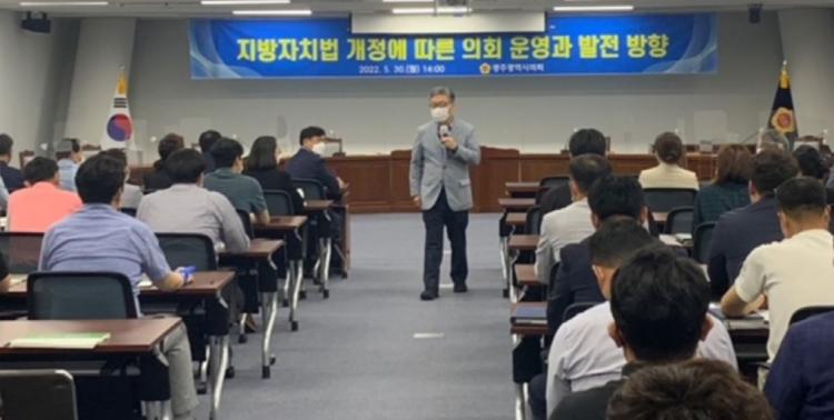 ±è¿ëÁý ±¤ÁÖ±¤¿ª½ÃÀÇȸ ÀÇÀåÀº Àλ縻À» ÅëÇØ ¡°±¤ÁÖ°¡ ´ëÇѹα¹À» ´ëÇ¥ÇÏ´Â ¼±ÁøÀÇȸ·Î µµ¾àÇϱâ À§Çؼ´Â »ç¹«Ã³ Á÷¿øµéÀÇ ¿ªÇÒÀÌ Áß¿äÇÏ´Ù¡±¸ç ¡°À̹ø °ÀǸ¦ ÅëÇØ 8´ë ÀÇȸ¸¦ Àß ¸¶¹«¸®Çϰí 9´ë ÀÇȸ°¡ Àü¹®¼º°ú ½Å·Ú¼ºÀ» °®Ãá ÀÇȸ·Î ÀÌ¾î ³ª°¥ ¼ö ÀÖµµ·Ï ÃÖ¼±À» ´ÙÇØ´Þ¶ó¡±°í ¸»Çß´Ù.