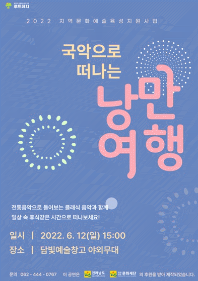Àü¶ó³²µµ¿Í Àü³²¹®ÈÀç´ÜÀÇ 2022³â Áö¿ª¹®È¿¹¼úÀ°¼º Áö¿ø»ç¾÷À¸·Î ÁøÇàµÇ´Â À̳¯ °ø¿¬Àº ¹®È¿¹¼ú±â¾÷ ¡®·çÆ®¸ÓÁö¡¯°¡ ±¹¾ÇÀ» ÅëÇØ ¼îÆØ, ºñÁ¦, »ý»ó½ºÀÇ ³¶¸¸ ½Ã´ë¸¦ ´ã¾Æ³¾ ¿¹Á¤ÀÌ´Ù.