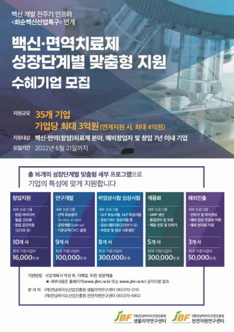 º¸°Çº¹ÁöºÎ¡¤Àü¶ó³²µµ¡¤È¼ø±ºÀÇ Áö¿øÀ» ¹Þ¾Æ¡®¹é½Å ±â¼ú»ç¾÷È ¿ÀÇÂÀ̳뺣ÀÌ¼Ç ·¦¡¯±¸Ãà»ç¾÷À» ÁøÇàÇϰí ÀÖÀ¸¸ç, ¼ºÀå´Ü°èº° ¸ÂÃãÇü Áö¿øÀ» ÅëÇØ ¿¹ºñâ¾÷ÀÚ ¹× â¾÷ 7³â À̳» ±â¾÷ÀÌ À¯´ÏÄÜ ±â¾÷À¸·ÎÀÇ ¼ºÀåÀ» ÃËÁøÇϱâ À§ÇÑ »ç¾÷ÀÌ´Ù.
