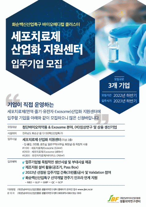 ¡®¼¼Æ÷Ä¡·áÁ¦ »ê¾÷È Áö¿ø¼¾ÅÍ¡¯¿¡´Â ÃÑ»ç¾÷ºñ 200¾ï¿øÀ» ÅõÀÔÇÏ¿© ȼø¹é½Å»ê¾÷Ư±¸ ³», ¿¬ ¸éÀû 4,343§³ÀÇ Áö»ó 2Ãþ ±Ô¸ð·Î ½ºÅ¸Æ®¾÷ ±â¾÷ÀÌ ±¸ÃàÇϱ⠾î·Á¿î GMP Å©¸°·ë, °øÁ¶½Ç, OPEN LAB, ¼¼Æ÷ÀºÇà µîÀÌ ±¸ÃàµÈ´Ù.