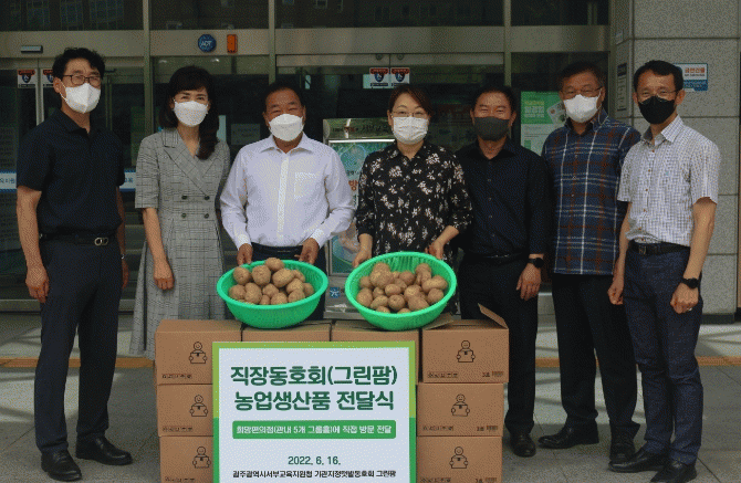 ±×¸°ÆÊ µ¿È£È¸´Â ¹ÚÁÖÁ¤ ±³À°ÀåÀ» ºñ·ÔÇØ ±³À°Áö¿øÃ» Àüü Á÷¿øµéÀÌ Âü¿©Çϰí ÀÖ´Ù. ƯÈ÷ ¼ºÎ±³À°Áö¿øÃ» ÁßÁ¢ »ç¾÷ÀÎ ¡®Èñ¸ÁÆíÀÇÁ¡¡¯ »ç¾÷°ú ¿¬°èÇØ Á÷¿øµéÀÌ ¶¡À» È긮¸ç Á÷Á¢ Àç¹è¡¤»ý»êÇÑ ¼öÈ®¹°À» Àü´ÞÇØ ´õ¿í Àǹ̸¦ ´õÇß´Ù. ¼öÈ®ÇÑ ÀÛ¹°Àº °¨ÀÚ·Î °ü³» 4°³ °øµ¿»ýȰ°¡Á¤(±×·ìȨ)¿¡ °¢ 30kg¾¿ ¹æ¹® Àü´ÞÇÒ ¿¹Á¤ÀÌ´Ù.