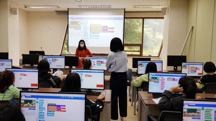 ÇÑÆí À̳¯ 4Â÷ ÀΰøÁö´É±³À°À» ½ÃÀÛÇÑ »êÆ÷ÃʵîÇб³ 29¸íÀÇ ÇлýµéÀº ¹é¶õ(ÄÄÇ»ÅͰøÇаú) ±³¼ö¿Í ÇÔ²² È£³²´ë IT ¹Ú¹°°ü¿¡¼ ICT¿Í ÀΰøÁö´ÉÀÇ ¿ª»çÀü°³¸¦ ½ÃÀÛÀ¸·Î IT ¹Ú¹°°ü ¼Òǰ üÇè, ÀΰøÁö´É ±âÃÊÇнÀ, ÀÀ¿ëºÐ¾ßÀÎ ÀΰøÁö´É¹ø¿ª±â ±¸ÇöÀ» ¿£Æ®¸® ºí·ÏÄÚµùÀ¸·Î ÇнÀÇß´Ù.