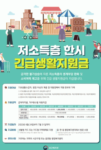 Àú¼ÒµæÃþ Çѽà ±ä±Þ »ýȰÁö¿ø±Ý Áö¿ø ´ë»óÀº 2022³â 5¿ù 29ÀÏ ±âÁØ ±âÃÊ»ýȰ¼ö±ÞÀÚ, ¹ýÁ¤ Â÷»óÀ§ °èÃþ ¹× ¾Æµ¿ ¾çÀ°ºñ Áö¿ø ÇѺθð°¡Á·ÀÌ´Ù.