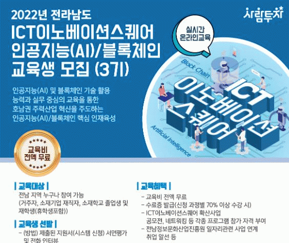À̹ø 3±â ±³À°Àº ¡âÀΰøÁö´É ±âº»°úÁ¤(Àü°ø/ºñÀü°ø) ¡âAI Àü¹®ÀÚ°Ý Ãëµæ°úÁ¤(AWS/GOOGLE) ¡âºí·ÏüÀÎ ±âº»°úÁ¤ ¡âÁö¿ªÆ¯È BC À¶ÇÕ BM °úÁ¤ µî 7°³ °úÁ¤À¸·Î 6¿ù 27ÀÏÀ» ½ÃÀÛÀ¸·Î °úÁ¤º° ÀÏÁ¤¿¡ µû¶ó ÁøÇàµÈ´Ù.