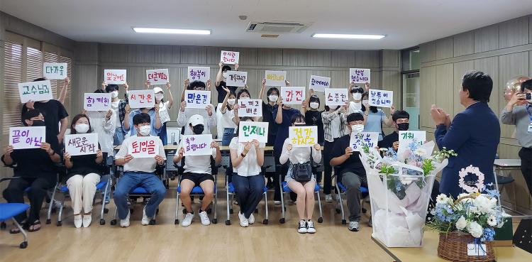 À̳¯ ±è±âÅ ±³¼öÀÇ Á¤³âÅðÀӽĿ¡´Â ÇѼ± ÇаúÀåÀ» ºñ·ÔÇÑ Çаú ±³¼öÁø°ú Çаú Á¹¾÷»ý ¹× ÀçÇлý 30¿©¸íÀÌ Âü¼®ÇßÀ¸¸ç, ÅðÀÓ ÃàÇÏ ÇÇÄÏ À̺¥Æ®¸¦ ºñ·ÔÇØ ±×µ¿¾ÈÀÇ ¾÷Àû°ú ³ë°í¿¡ °¨»çÀÇ ¸¶À½À» ÀüÇÏ´Â ½Ã°£À» °¡Á³´Ù.