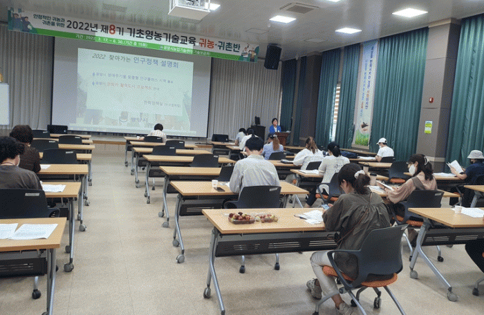 À̳¯ ±âÃÊ¿µ³óÁ¤Âø ±â¼ú±³À° ¡¯±Í³ó±ÍÃ̹ݡ¯ ±³À°»ýµé¿¡°Ô 2022³â Àα¸Á¤Ã¥ ÃßÁø ¹æÇâ°ú »ý¾ÖÁֱ⺰ Àα¸½ÃÃ¥À» ¾È³»Çϰí ÀºÅðÀÚ È°·Âµµ½Ã ÇÁ·ÎÁ§Æ® »ç¾÷ µîÀ» ¼³¸íÇÏ´Â µî ¼ö¿äÀÚ Áß½ÉÀÇ ¸ÂÃãÇü ¼³¸íȸ¸¦ ÁøÇàÇØ È£Æò¹Þ¾Ò´Ù.