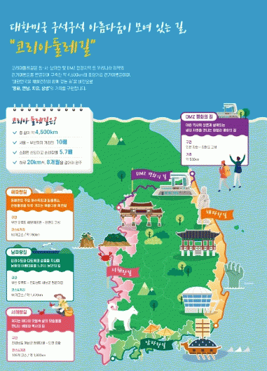 ÇÑÆí ÄÚ¸®¾ÆµÑ·¹±æÀº µ¿¡¤¼¡¤³²ÇؾȰú DMZ Á¢°æÁö¿ª µî ¿ì¸®³ª¶ó ¿Ü°ûÀÇ °È±â ¿©Çà±æÀ» ¿¬°áÇÑ ÃѱæÀÌ ¾à 4,500§°ÀÇ ÃÊÀå°Å¸® °È±â ¿©Çà ÄÚ½ºÀÌ´Ù. ¼Çضû±æ°ú ³²ÆÄ¶û±æ, ÇØÆÄ¶û±æ(ºÎ»ê~°í¼º ¾à 750§°), DMZ ÆòÈÀÇ ±æ(°í¼º~°È)·Î ±¸¼ºµÅ ÀÖ´Ù.