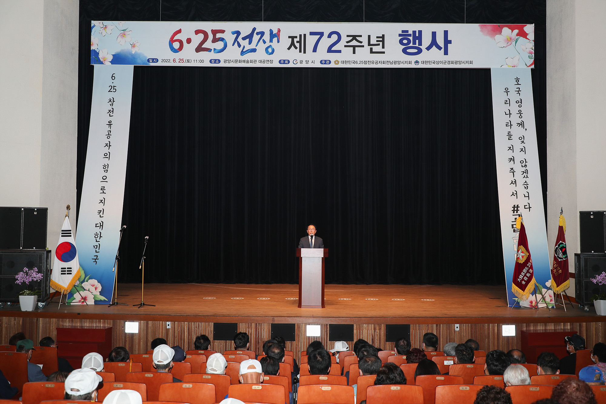 À̳¯Àº 6¡¤25ÀüÀï Á¦72ÁÖ³âÀ» ¸Â¾Æ ±è°æÈ£ ºÎ½ÃÀå, ¹®¾ç¿À ±¤¾ç½ÃÀÇȸºÎÀÇÀå, µµ¡¤½ÃÀÇ¿ø, µµ¡¤½ÃÀÇ¿ø, 6.25 ÂüÀü¿ë»ç¿Í º¸ÈÆ´ÜüÀå, ±â°ü¡¤»çȸ ´ÜüÀå µî ³»¿Üºó 200¸íÀÌ Âü¼®ÇÑ °¡¿îµ¥ 6¡¤25ÀüÀïÀÇ Àǹ̸¦ µÇ»õ±â°í ³ª¶ó¸¦ À§ÇØ Çå½ÅÇÑ ÂüÀü¿ë»çÀÇ ¼þ°íÇÑ Èñ»ýÁ¤½ÅÀ» ±â¸®±â À§ÇÑ ½Ã°£À¸·Î ¸¶·ÃµÆ´Ù.