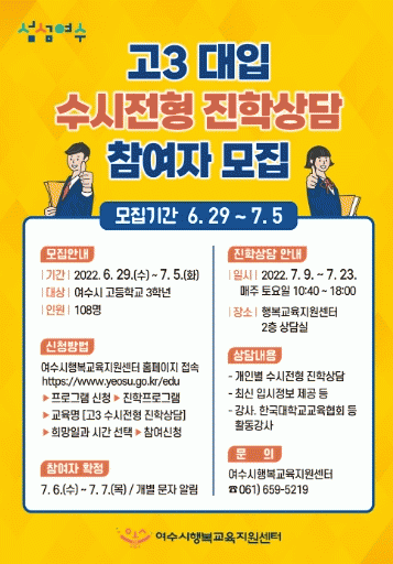 »ó´ãÀ» Èñ¸ÁÇÏ´Â ÇлýÀº 6¿ù 29ÀϺÎÅÍ ´ÙÀ½´Þ 5ÀϱîÁö ¿©¼ö½ÃÇູ±³À°Áö¿ø¼¾ÅÍ È¨ÆäÀÌÁö¿¡¼ ½ÅûÇÏ¸é µÈ´Ù.
