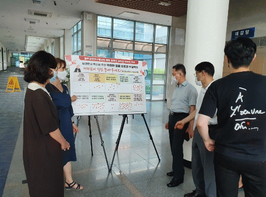 À̾î 22~24ÀÏ¿¡´Â Á¤º¸¿ø Á÷¿øµé°ú Á¤º¸¿ø º»°ü ÃâÀÔ¹®À» ÀÌ¿ëÇÏ´Â ½Ã±³À°Ã» Á÷¿øµéÀ» ´ë»óÀ¸·Î ÅõÇ¥¸¦ ÁøÇàÇß´Ù. ÇöȲÆÇ À§ ¸¶À½¿¡ µå´Â ½½·Î°Ç¿¡ ½ºÆ¼Ä¿¸¦ ºÎÂøÇÏ´Â ¹æ½ÄÀ¸·Î ÁøÇàµÅ ½ºÆ¼Ä¿¸¦ °¡Àå ¸¹ÀÌ ¹ÞÀº ½½·Î°ÇÀ» ÃÖ¿ì¼öÀÛÀ¸·Î ¼±Á¤Çß´Ù.