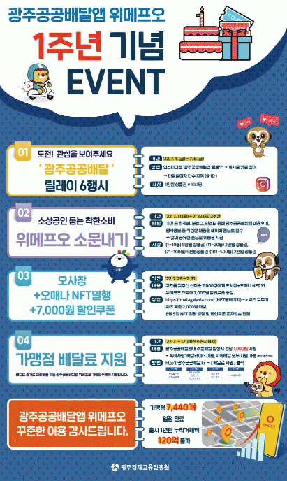 ¡®À§¸ÞÇÁ¿À ¼Ò¹®³»±â¡¯´Â Çà»ç±â°£ Áß ¸¾Ä«Æä, ºí·Î±×, ÀνºÅ¸±×·¥ µî¿¡ ±¤ÁÖ°ø°ø¹è´Þ¾ÛÀ» È«º¸ÇÑ ÈÄ È«º¸³»¿ªÀ» ³×À̹ö ÆûÀ» ÅëÇØ Á¢¼öÇÏ¸é °øÀ¯ÇÑ °Ô½Ã¹°ÀÌ ¸¹Àº ¼ø¼´ë·Î °ø°ø¹è´Þ¾Û 5¸¸¿ø/2¸¸¿ø/5000¿ø/2000¿ø »óǰ±ÇÀ» Áö±ÞÇÑ´Ù.