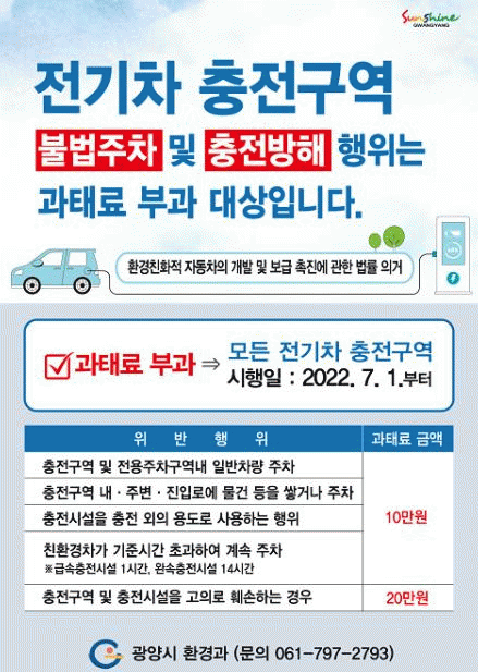 ÁֹνŰíÁ¦ ½ÃÇàÀ¸·Î Àü±âÃæÀü±¸¿ª ³» ÃæÀü ¹æÇØÇàÀ§¿¡ ´ëÇÑ ½Å°í°¡ °£´ÜÇØÁü¿¡ µû¶ó ģȯ°æÀÚµ¿Â÷ Àü¿ëÁÖÂ÷±¸¿ª ¶Ç´Â ÃæÀü½Ã¼³ÀÌ ¼³Ä¡µÈ °ø°øÁÖÂ÷Àå ¹× °øÁßÀÌ¿ë½Ã¼³, ¾ÆÆÄÆ® µî¿¡ ÁÖÂ÷ÇÒ °æ¿ì °¢º°ÇÑ ÁÖÀǰ¡ ÇÊ¿äÇÏ´Ù.