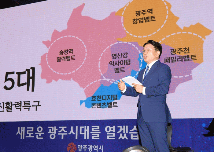 ° ½ÃÀåÀº ¡°½Ã¹ÎµéÀÇ »îÀÌ ¹Ù²î°í ½Ã¹ÎµéÀÌ ÇູÇÑ ±¤ÁÖ¸¦ À§Çؼ´Â ½Ã´ëÀÇ º¯È¿¡ ¸Â´Â »õ·Î¿î »ê¾÷ °æÀï·ÂÀÌ ÇÊ¿äÇÏ´Ù¡±¸ç À̸¦ ½ÇÇöÇϱâ À§ÇØ ¡®±¤ÁÖ ½Å°æÁ¦Áöµµ¡¯¿Í ¡®±¤ÁÖ ½ÅȰ·ÂƯ±¸¡¯¸¦ ±¸ÃàÇϰڴٴ °èȹÀ» ¹àÇû´Ù.