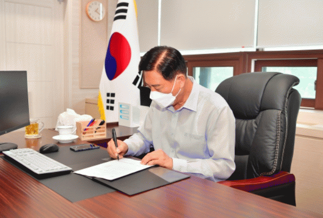 À强±ºÃ»¿¡ µµÂøÇÑ ±èÇÑÁ¾ ±º¼ö´Â û»ç¿¡ µé¾î¼±â Àü, ±º¹ÎÀ» ¼¶±â°Ú´Ù´Â Àǹ̸¦ ´ã¾Æ Å«ÀýÀ» ¿Ã·È´Ù. ÀÌ¾î¼ »ç¹«Àμö¼¿¡ ¼¸íÇÏ¸ç ¹Î¼±8±â ½ÃÀÛÀ» °ø½ÄÈÇß´Ù.