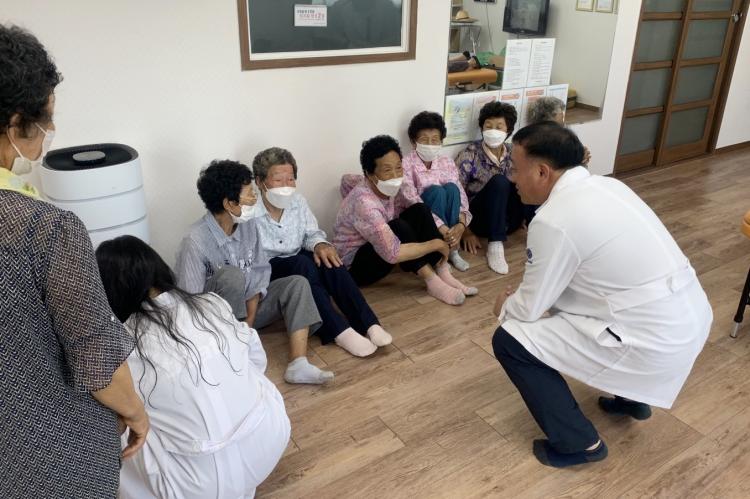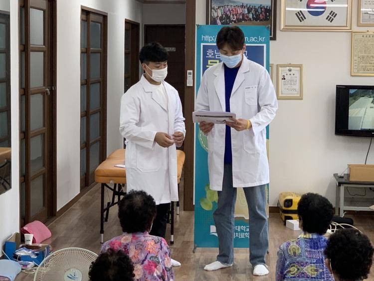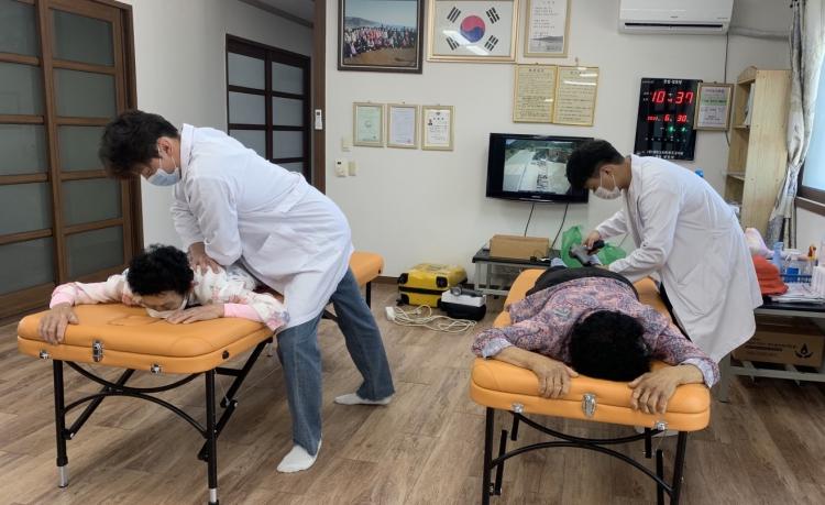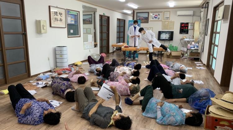 ¹°¸®Ä¡·áÇаú ¡®PTSC¡¯ µ¿¾Æ¸® ÀÌÁ¤¿í Áöµµ±³¼ö´Â û»êµµ ÁÖ¹ÎÀ» ´ë»óÀ¸·Î ÀÏ»ó»ýȰ¿¡¼ ¿Ã¹Ù¸¥ ÀÚ¼¼ ¹× À¯¿¬¼º ¿îµ¿À» ±³À°Çϰí, ¿Â¿ ¹× Àü±âÄ¡·á¿Í Clinical massage¸¦ ÁøÇàÇß´Ù.
