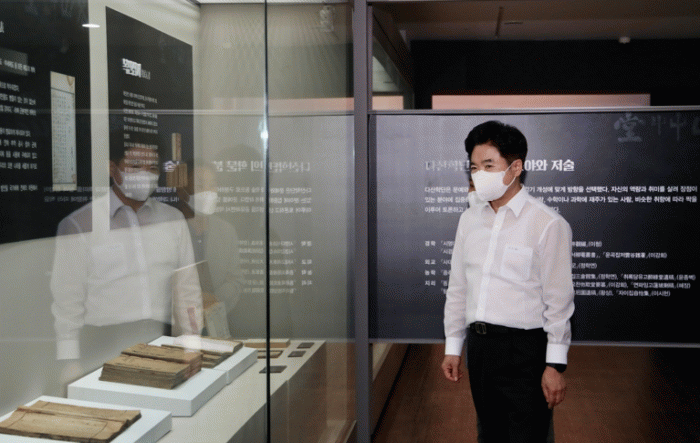 ±×´Â ´Ù»ê¹Ú¹°°ü¿¡¼ Àü½Ã½Ç ¾È³»¸¦ ÇØÁØ ¹®ÈÇØ¼³»çµé°ú ¸¸³ª ¡°2¹é³â Àü ´Ù»ê ¼±»ýÀº Àü³²±³À°ÀÌ °¡¾ß ÇÒ ±æÀ» ÀÌ¹Ì ¸»ÇØÁÖ¾ú´Ù.¡±¸ç ¡°±× °¡¸£Ä§À» ²À »õ°Ü Àü³²±³À° ´ëÀüȯÀ» ½ÇÇöÇϰڴÙ.¡±°í ´ÙÁüÇß´Ù.