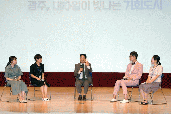 À̳¯ ¡®½Ãû °øÁ÷ÀÚ¿Í ÅäÅ©¡¯´Â ½ÃÁ¾ ¿ôÀ½°ú ¹Ú¼ö°¡ ³ÑÄ¡¸é¼µµ ¶§·Ð Á÷¿øµéÀÇ ¿¹»óÄ¡ ¸øÇÑ ³¯Ä«·Î¿î Áú¹®ÀÌ ÅÍÁ® ³ª¿Ô°í, ° ½ÃÀåµµ ±¤ÁÖ½ÃÁ¤¿¡ ÀÓÇÏ´Â ÀÚ¼¼¿Í öÇÐ µîÀº ÁøÁöÇÏ°Ô ´äº¯ÇÏ´Â ÇÑÆí, °ï¶õÇÑ Áú¹®¿¡ ´ëÇØ¼´Â ÀçÄ¡ÀÖ°Ô ¹Þ¾Æ³Ñ±â±âµµ Çß´Ù.