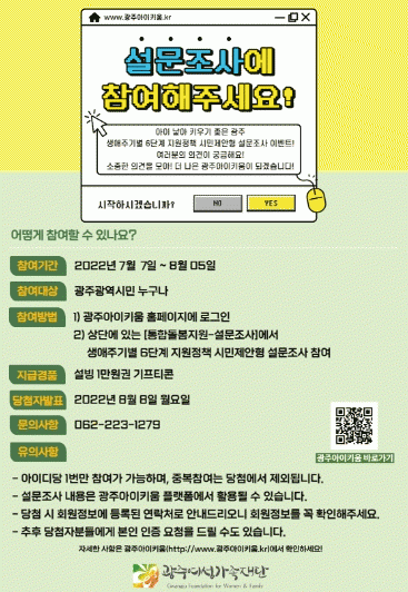 ¼³¹® Âü¿©´Â ±¤ÁÖ¾ÆÀÌŰ¿ò ȨÆäÀÌÁö ÆË¾÷âÀ̳ª »ó´Ü ÅëÇÕµ¹º½Áö¿ø-¼³¹®Á¶»ç °Ô½ÃÆÇ¿¡ ÀÛ¼ºÇÏ¸é µÈ´Ù.