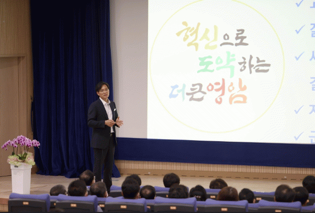 À̳¯ 7¿ù Á¤·Ê Á¶È¸´Â °¢ ½Ç°úÀå ¹× °øÁ÷ÀÚ 330¿© ¸íÀÌ Âü¼®ÇÑ °¡¿îµ¥ ¿¬¼³ ´Ü»ó ¾øÀÌ Á÷Á¢ ÀÛ¼ºÇÑ ÇÁ·¹Á¨Å×À̼ÇÀ» Ȱ¿ëÇÑ ºê¸®ÇÎ Çü½ÄÀ¸·Î ¿µ¾ÏÀÇ Ã»»çÁøÀ» ¹àÇû´Ù.