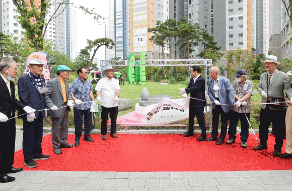 À̳¯ Á¦¸· Çà»ç´Â ÀÓÅà µ¿±¸Ã»Àå°ú ´ç½Ã ½ÃÀ§¸¦ ÁÖµµÇß´ø ±èº´¿í¡¤±è¼±´ã¡¤ÀÌÈ«±æ µî ³»¿ÜºóÀÌ Âü¼®ÇÑ °¡¿îµ¥ ÁøÇàµÆÀ¸¸ç ´ç½Ã Çϼ÷ÁýÅÍ(°è¸²µ¿ 499¹øÁö)°¡ ÇöÀç °è¸²µ¿ ±×·£µå¼¾Æ®·² ¾ÆÆÄÆ®°¡ µé¾î¼± °ü°è·Î Çϼ÷ÁýÀÌ ÀÖ´ø ÀÚ¸®ÀÎ ¾ÆÆÄÆ® 103µ¿°ú 113µ¿ »çÀÌ Á¶°æ °ø°£¿¡ ±â³ä¼®À» ¼³Ä¡Çß´Ù.