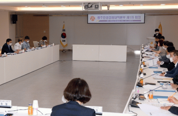 À̳¯ ȸÀÇ¿¡´Â ±¤Áֽà °æÁ¦ °ü·Ã ºÎ¼, ±¤ÁÖ»ó°øÈ¸ÀǼҡ¤°æ¿µÀÚÃÑÇùȸ¡¤Çѱ¹¹«¿ªÇùȸ µî °æÁ¦´Üü, ±¤ÁÖÀü³²Áö¹æÁß¼Òº¥Ã³±â¾÷û, ±¤ÁÖÁö¹æ°í¿ë³ëµ¿Ã», Çѱ¹ÀºÇà, ±ÝÀ¶°¨µ¶¿ø µî À¯°ü±â°üÀÌ Âü¿©ÇÑ °¡¿îµ¥ °æÁ¦À§±â ±Øº¹À» À§ÇÑ ±â°üº° ÃßÁø»óȲ°ú ´ëÃ¥º»ºÎ ¼¼ºÎ ¿î¿µ°èȹÀ» °øÀ¯Çß´Ù.