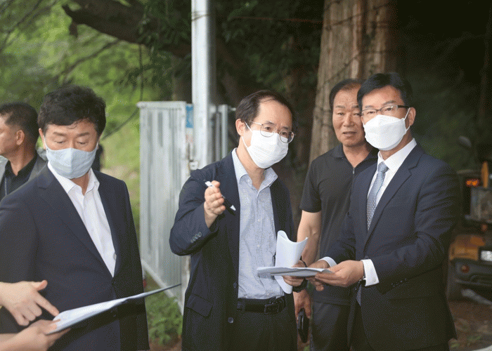 À̳¯ ¹æ¹®Àº ´çÃÊ °èȹ¿¡ ¾ø´ø °ÍÀ¸·Î, ¹Úº´±Ô ûÀåÀº °¥µîÀÌ ´õ Ä¿Áö´Â °ÍÀ» ¿¹¹æÇϱâ À§ÇØ Á÷Á¢ ÇöÀåÀ» »ìÇǸç ÁֹεéÀÇ ÀǰßÀ» µè°í, Á¶¼ÓÇÑ Á¶Ä¡¸¦ ¾à¼ÓÇß´Ù.