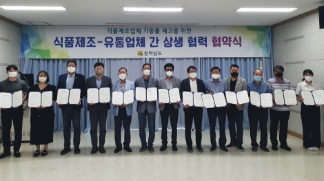 Àü³²µµ´Â 11ÀÏ ½Äǰ»ê¾÷¿¬±¸¼¾ÅÍ¿¡¼ ½ÄǰÁ¦Á¶¾÷ü, À¯Åë¾÷ü °ü°èÀÚ¿Í ³ªÁÖ¡¤±¸·Ê¡¤°î¼º¡¤¿µ±¤¡¤ÇÔÆò 5°³ ½Ã±º µî 25¸íÀÌ Âü¼®ÇÑ °¡¿îµ¥ ¡®½ÄǰÁ¦Á¶-À¯Åë¾÷ü°£ »ó»ýÇù·Â Çù¾à½Ä¡¯À» Çß´Ù.
