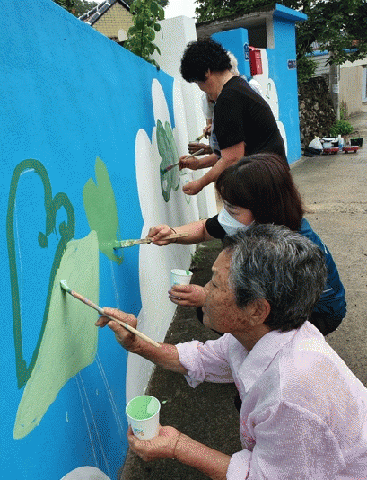 ¸¶À»È¸°üÀ» ÁßÁ¡À¸·Î ¸¶À» ÁֹεéÀº Á÷Á¢ º®È ÀÛ¾÷¿¡ Âü¿©ÇÏ¸ç ³ëÈÄÈµÈ º®¸éÀ» »ê¶æÇÏ°Ô º¯È½Ã۰í ÀÖ´Ù. º®È ±×¸®±â¿¡ Âü¿©ÇÑ ÁֹΠA¾¾´Â ¡°º®È Çϳª·Î ¸¶À»ÀÌ È¯ÇØÁ³´Ù. Á÷Á¢Âü¿©Çؼ ´õ ¾ÖÁ¤ÀÌ °£´Ù.¡±¶ó¸ç Áñ°Å¿öÇß´Ù.
