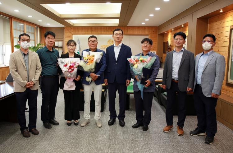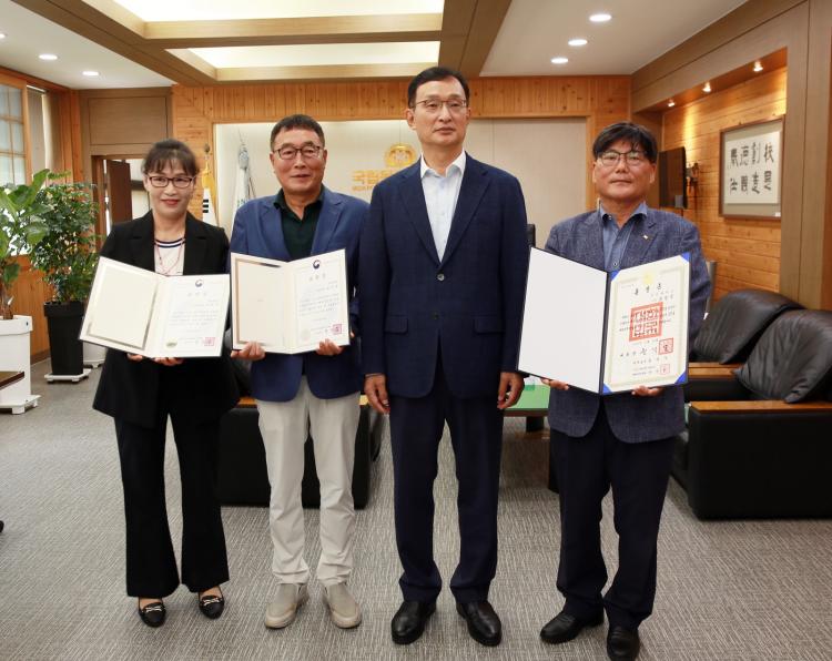 À̳¯ À±»ó±¹ ¼±â°üÀÌ ³ìÁ¶±ÙÁ¤ÈÆÀå, ¹Ú¿¬È¡¤À̼±Èñ ÁÖ¹«°üÀÌ ¿ÁÁ¶±ÙÁ¤ÈÆÀå, ÃֱͺÀ¡¤½Å¿¬ÀÌ ÁÖ¹«°üÀÌ ±³À°ºÎ Àå°ü ǥâÀ» ¹Þ¾Ò´Ù.