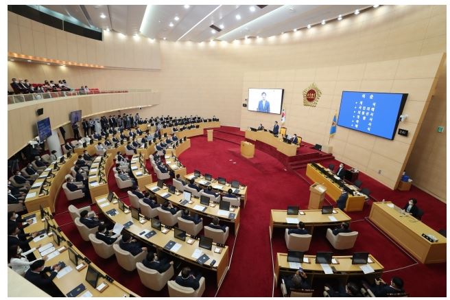 °³È¸ ù³¯ÀÎ 19ÀÏ Á¦1Â÷ º»È¸ÀÇ¿¡¼´Â ±è¿µ·Ï µµÁö»ç¿Í ±è´ëÁß ±³À°°¨À¸·ÎºÎÅÍ µµÁ¤°ú ±³À°ÇàÁ¤¿¡ ´ëÇÑ ½ÃÁ¤¿¬¼³°ú 2022³âµµ Á¦1ȸ Ãß°¡°æÁ¤¿¹»ê¾È¿¡ ´ëÇÑ Á¦¾È¼³¸í µîÀ» ûÃëÇÑ´Ù.