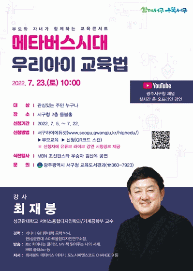 À¯Æ©ºê ä³ÎÀ» ÅëÇÑ ½Ç½Ã°£ ¿Â-¿ÀÇÁ¶óÀÎÀ¸·Î ÁøÇàµÇ´Â À̹ø ±³À°ÄܼƮ´Â ¹®¸íÀ» Àд °øÇÐÀÚ·Î À¯¸íÇÑ ¼º±Õ°ü´ëÇб³ ÃÖÀçºØ ±³¼ö¸¦ ÃÊûÇÏ¿© ¡®¸ÞŸ¹ö½º½Ã´ë ¿ì¸®¾ÆÀÌ ±³À°¹ý¡¯À» ÁÖÁ¦·Î ÁøÇàµÈ´Ù.