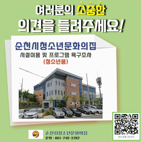 û¼Ò³â¹®ÈÀÇÁý ¿å±¸Á¶»ç¿¡ °üÇÑ ±âŸ ÀÚ¼¼ÇÑ »çÇ×Àº ¼øÃµ½Ã û¼Ò³â¹®ÈÀÇÁý ȨÆäÀÌÁö¿¡¼ È®ÀÎÇϰųª ¼øÃµ½Ã ¾Æµ¿Ã»¼Ò³â°ú·Î ¹®ÀÇÇÏ¸é ¾È³»¹ÞÀ» ¼ö ÀÖ´Ù.
