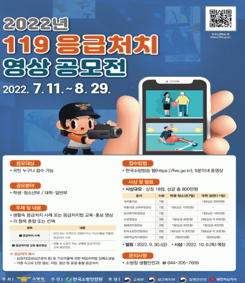°ø¸ð³»¿ëÀº ¡ã»ýȰ ¼Ó µµ¿òÀÌ µÇ´Â »óȲº° ÀÀ±Þóġ¹ý ¡ã½ÇÁ¦ »ç·Ê¸¦ À翬Çϰųª °¡»ó»óȲÀ» ¿¬ÃâÇÑ ÀÀ±Þóġ¹ý µî ±³À°¡¤È«º¸¿ëÀ¸·Î Ȱ¿ë °¡´ÉÇÑ ÇüÅÂÀÇ µ¿¿µ»óÀ» 5ºÐ À̳»·Î Á¦ÀÛÇϰí Çѱ¹¼Ò¹æ¹æ¼Û ´©¸®ÁýÀ» ÅëÇØ Á¦ÃâÇÏ¸é µÈ´Ù.