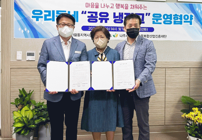 ºû°¡¶÷µ¿Àº ÃÖ±Ù ³ªÁÖ³ó¾÷ÁøÈïÀç´Ü°ú ¸Ô°Å¸® »ç°¢Áö´ë ÇØ¼Ò¸¦ °ñÀÚ·Î ÇÑ ¿ì¸®µ¿³× °øÀ¯ ³ÃÀå°í ¿î¿µ Çù¾àÀ» ü°áÇß´Ù°í 22ÀÏ ¹àÇû´Ù.