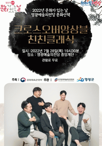 Çѱ¹¹®È¿¹¼ú¿¬ÇÕȸÀÇ 2022³â Áö¿ª¹®È¿¹¼úȸ°ü ¹®È°¡ ÀÖ´Â ³¯ Áö¿ø °ø¸ð»ç¾÷À¸·Î ¼±Á¤µÈ °ø¿¬À̸ç, ¹®ÈüÀ°°ü±¤ºÎ¿¡¼ ÁÖÃÖÇϰí Çѱ¹¹®È¿¹¼úȸ°ü¿¬ÇÕȸ¿Í ¿µ±¤±º¿¡¼ ÁÖ°üÇÑ´Ù. °ü¶÷·á´Â ¹«·áÀÌ¸ç ¿µ±¤¿¹¼úÀÇÀü´ç ¾ß¿Ü°ø¿¬Àå(Áß¾Ó°è´Ü)À» ã¾Æ¿À¸é ´©±¸³ª °ü¶÷ °¡´ÉÇÏ´Ù.